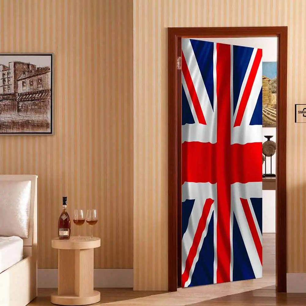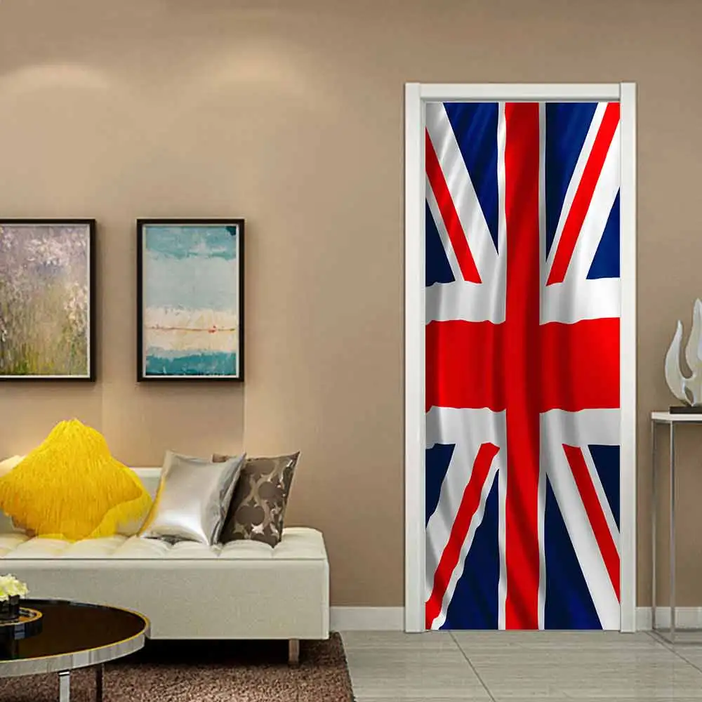 Best Seller 3D Door Stickers For Living Room Bedroom Creative UK Flag Mural Decal DIY Wallpaper Waterproof Self