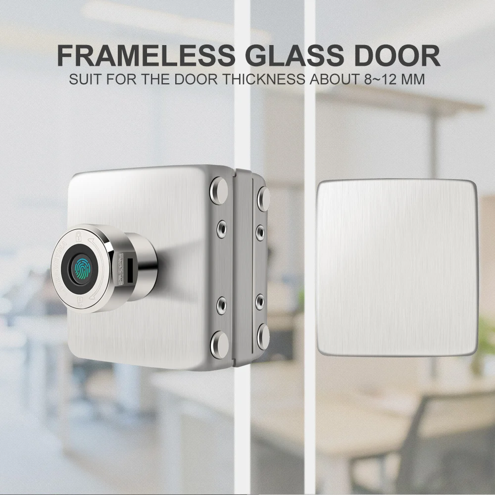 Smart Fingerprint Door Lock For Office Frameless Glass Door Keyless Electric Integrated Lock USB Re